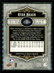 2009 UPPER DECK A PIECE OF HISTORY Baseball Card #54 RYAN BRAUN Milwaukee Brewers