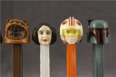 Mixed Lot 9 Star Wars Characters PEZ Toy Dispensers. YODA, Leia, Darth Vader, C3P0, Storm Trooper, Chewbacca, Boba Fett, Ewok and Luke in Uniform. Crisp and clean. No smoke or pet odor. Toys measure 7/8" tall.