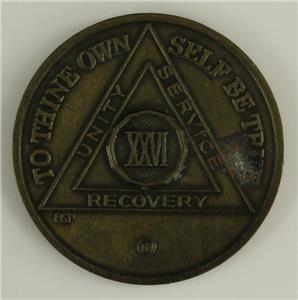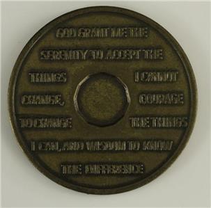 Brass AA Alcoholics Anonymous XXVI Token Unity Service Recovery Serenity Prayer - measures 34MM across.