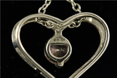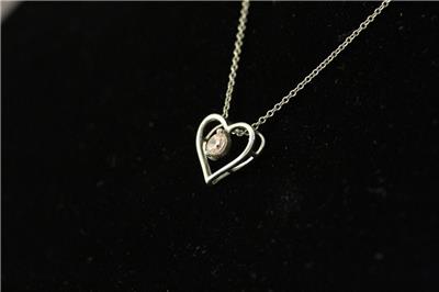 Modern Fine Jewelry ATI Sterling Silver 18" Necklace Open Heart Pendant Pink CZ. No smoke or pet odor.