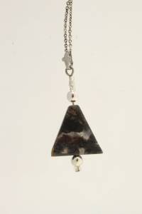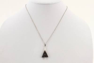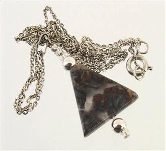 Modern Semi Precious Jewelry 18" Jasper Triangle Pendant Silver Tone Necklace. The pendant measures 5/8" tall. No smoke or pet odors.