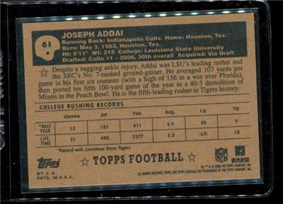 2006 TOPPS HERITAGE ROOKIE Football Card #61 JOSEPH ADDAI Indianapolis Colts