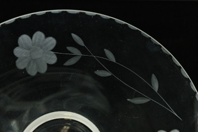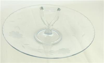 Vintage Glass Tidbit Sandwich Serving Tray Gray Cut Floral Pattern 10.25" in diameter. Gently used. No chips. Smoke and pet free.