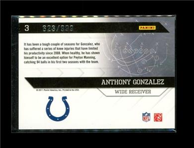 2011 DONRUSS ELITE POWER FORMULAS Chrome Football Card #3 ANTHONY GONZALEZ Indianapolis Colts Limited Edition 623/999