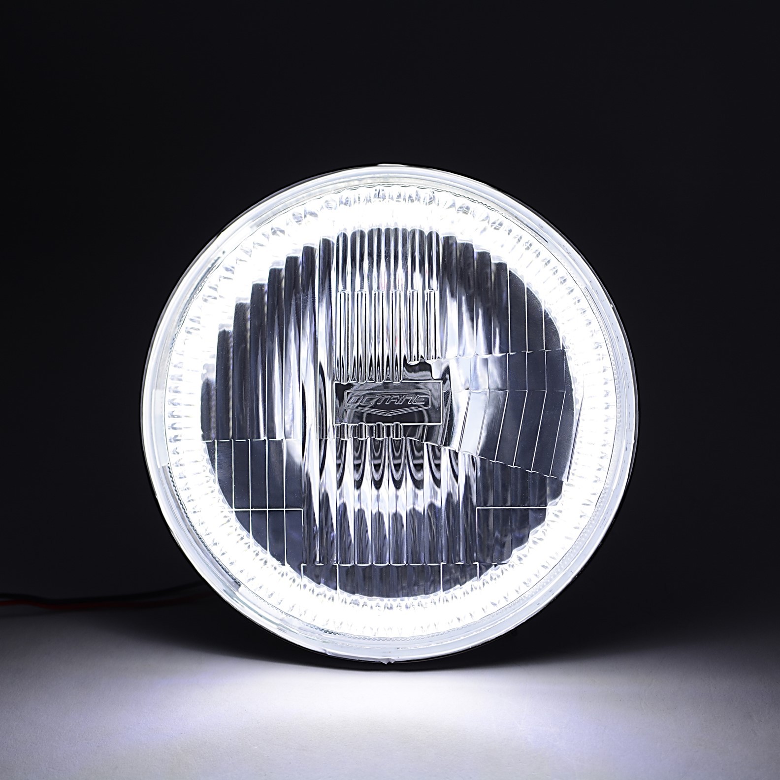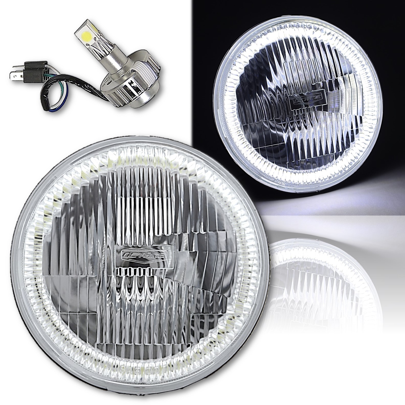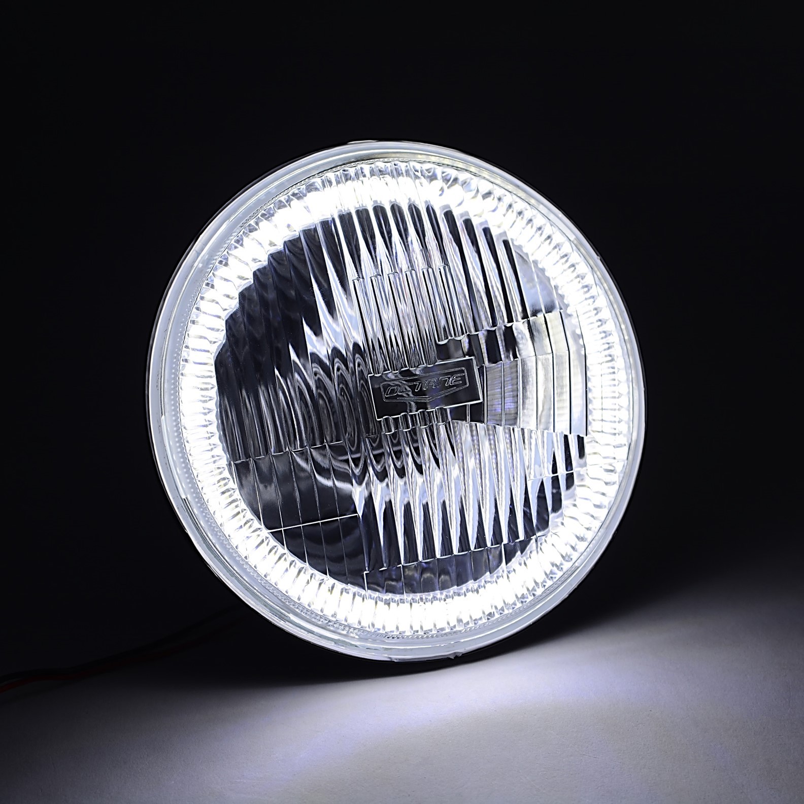 (1) 7" STOCK STYLE GLASS LENS W/ WHITE COB LED HALO H4 CONVERSION HEADLIGHT