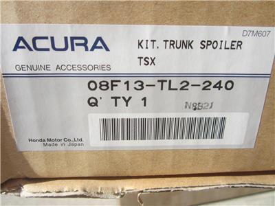 This is a new OEM Acura spoiler. It fits 2009, 2010, 2011, 2012, 2013 and 2014 Acura TSX. This is for the sedan model only. Includes spoiler, wiring harness and hardware. DOES NOT INCLUDE INSTALLATION INSTRUCTIONS.