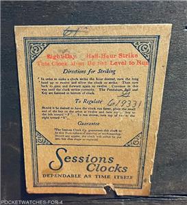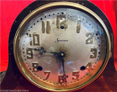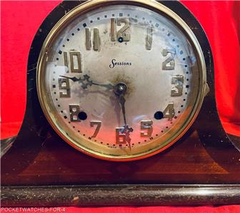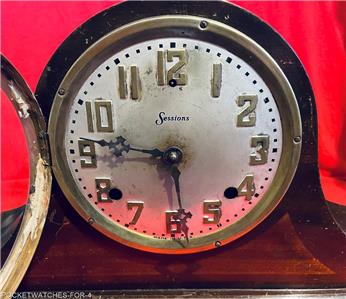 ANTIQUE SESSIONS TAMBOUR MANTEL CLOCK 8 DAY HALF HOUR STRIKE AS-IS CONDITION