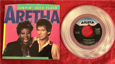 Aretha Franklin 45 RPM Record + Sleeve Jumpin' Jack Flash Clear Vinyl Record Keith Richards & Aretha Franklin on Cover