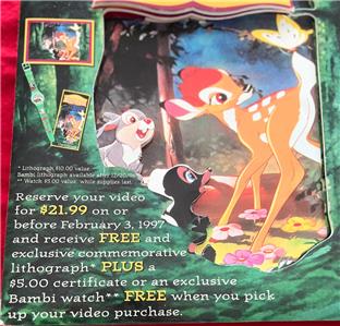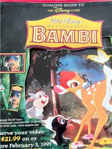 Vintage Bambi Cardboard Disney Store Movie Video Advertising Display Walt Disney's Masterpiece Bambi Approx: 14 x 11"