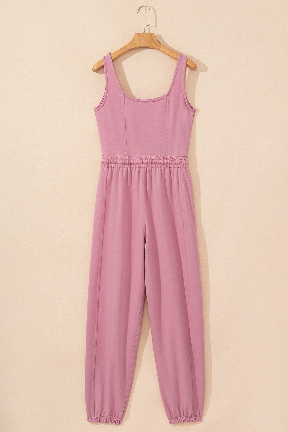 | Light Pink Lace-up Elastic Waist Sleeveless Square Neck Jumpsuit • Effortlessly chic with a lace-up elastic waist for a trendy touch. • Sleeveless design keeps you cool and stylish in warm weather. • Square neck adds a sophisticated and modern flair. • Convenient side pockets for practical storage on the go. | Material: 72% Cotton + 26% Polyester + 2% Elastane Neckline: Squarecollar Details: Knot | Sleeve Length: Sleeveless Silhouette: Sheath Style: Casual | Occasion: Daily Waist Line: Natural Pattern: Solid | |