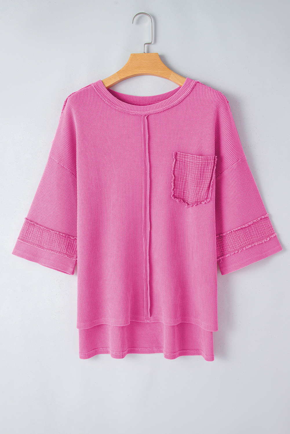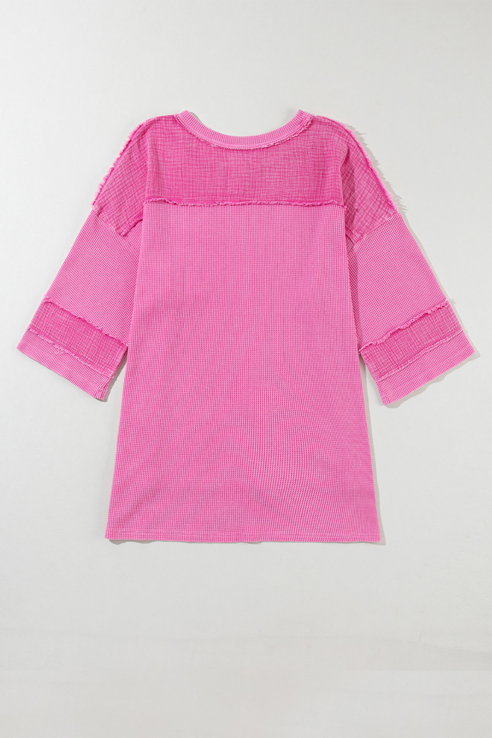 | Bright Pink Oversized Mineral Wash Textured Bracelet Sleeve Top