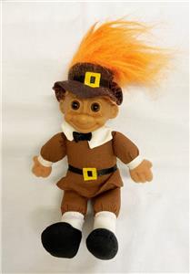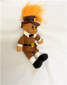 Vintage Russ Troll Doll Thanksgiving Pilgrim Orange Hair Soft Body Hard Rubber Head 8 inches tall Plus 3 inches of Hair