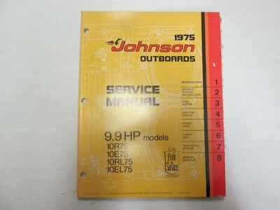 1975 Johnson Outboards 135 HP Manuale di servizio Modelli: 135esl75 / 135etl75 Revisione n. JM-7514 Copritura: Informazioni sul servizio generale Sistema di alimentazione Sistema di accensione Testa di potenza Unita inferiore Sistema elettrico Telecomando Potenza e inclinazione passo dopo passo Istruzioni, esploso Illustrazioni e/o diagrammi, ottimo manuale da avere quando possiedi Johnson Outboards. Questo manuale ti fara risparmiare denaro Riparazioni/Servizio. Questo manuale e pubblicato da Johnson a bordoe sono gli stessi manuali Johnson I meccanici/tecnici usano. Se hai ulteriori domande, sentiti libero di inviarci un messaggio