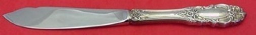 Sterling Silver HOLLOW HANDLE WITH STAINLESS IMPLEMENT FISH KNIFE WITH NOTCH 9" in the pattern GRAND DUCHESS BY TOWLE. It is NOT monogrammed and is in excellent condition.
