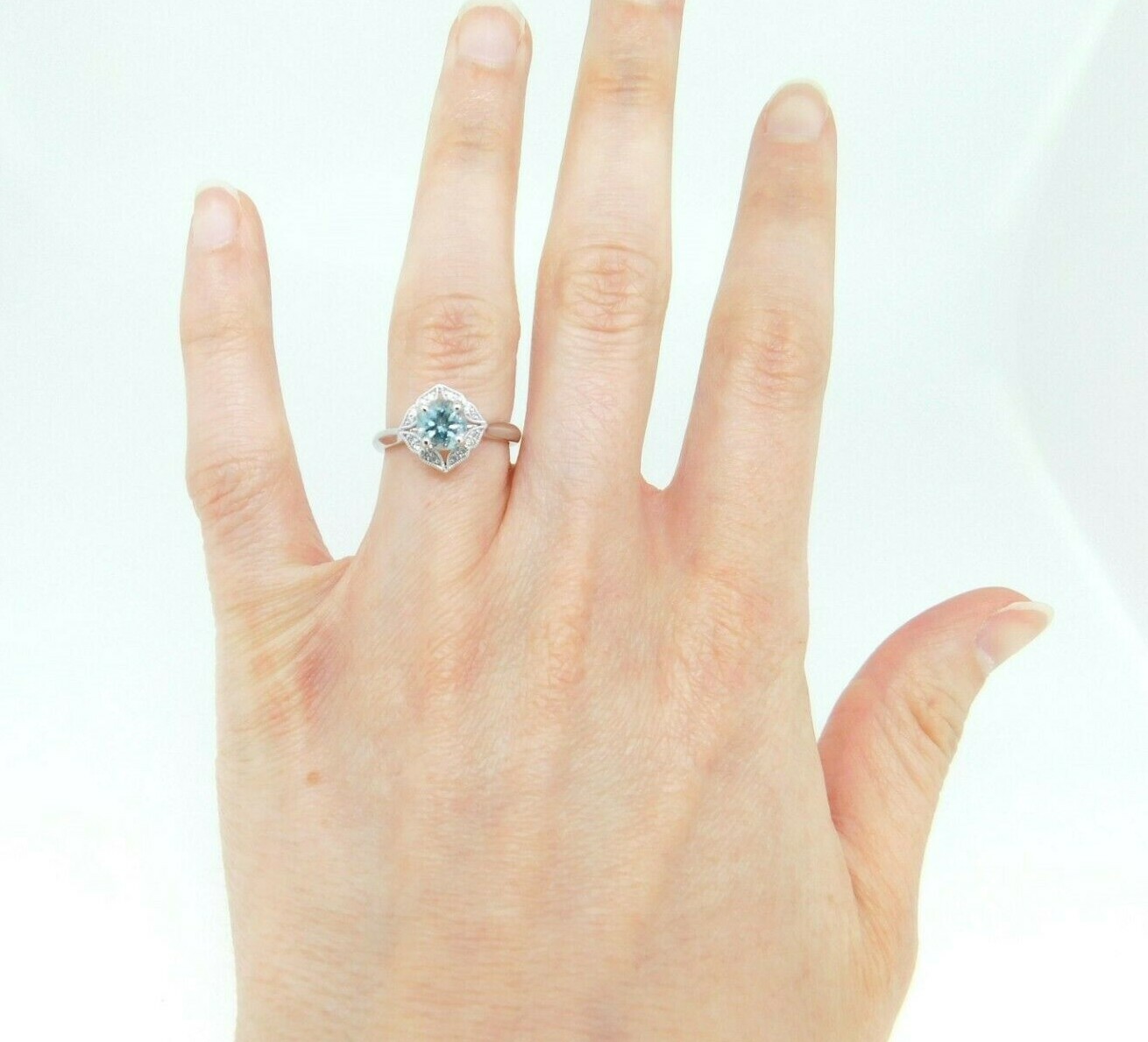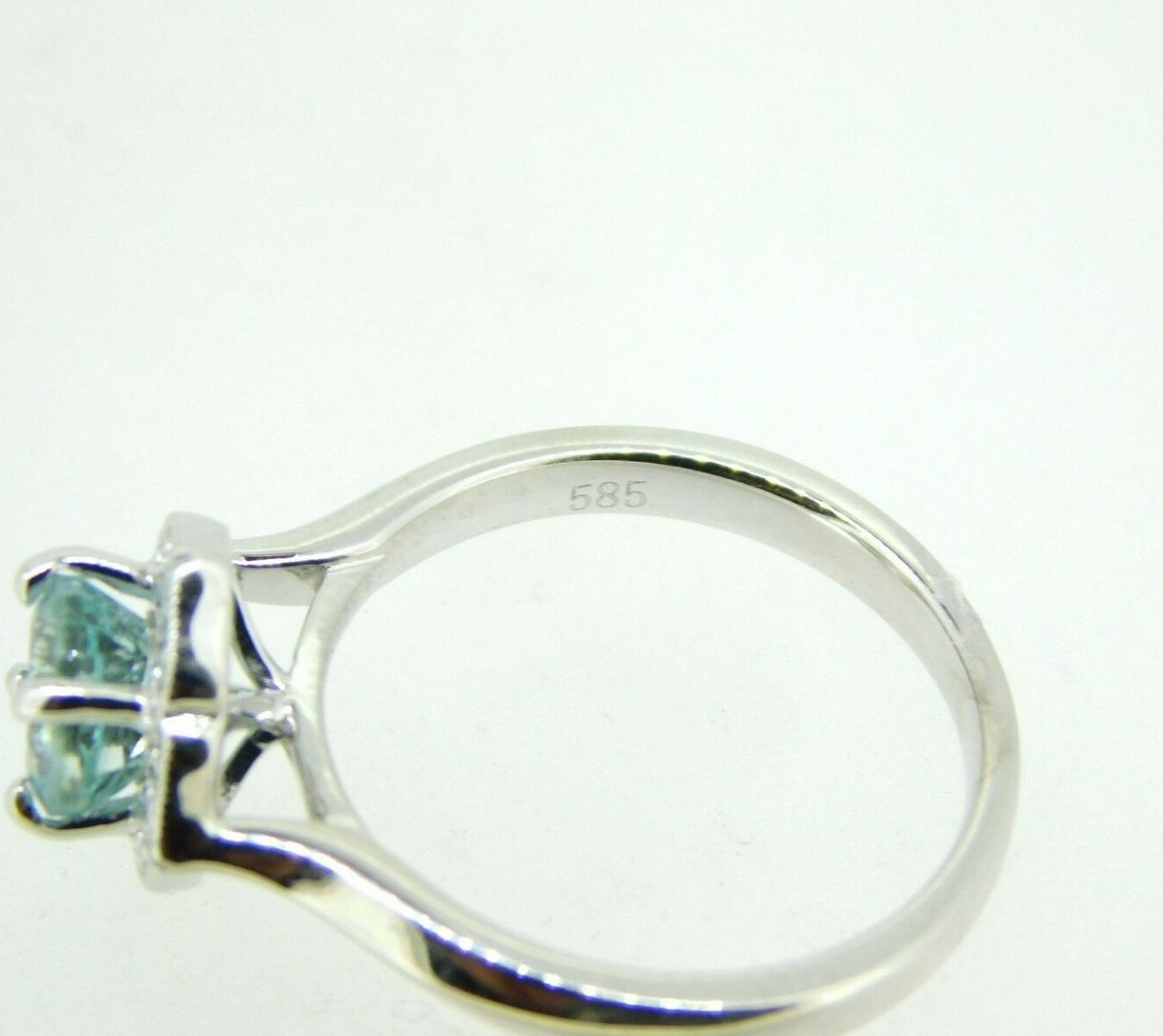 14k White Gold Sky Blue Genuine Natural Tourmaline and Diamond Ring (#J5041)Item Description