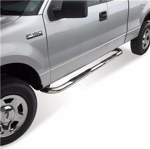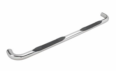 Westin E-Series Step Bars are made of 3 inch diameter round tubing and are available in polished or black powder coat finish. Recessed step pads maintain the integrity of the step tube for maximum rust protection. Applications are vehicle specific and a mount kit is included, so there is only one part number to buy. Applications utilize factory mount points for installation for an easy no-drill installation