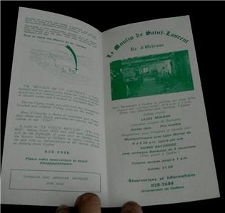 Le Moulin de Saint-Laurent, on the Island of Orleans, Vintage Tour Pamphlet, VGC