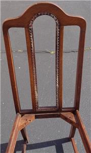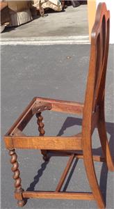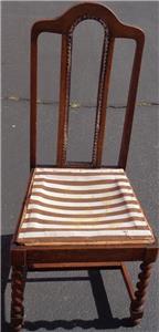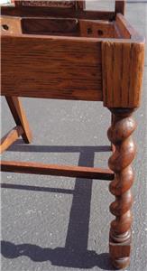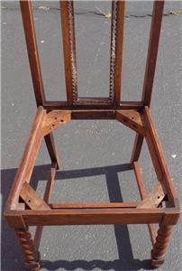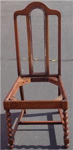 Offered here is this Beautiful Antique Cross Cut Oak High Back Side Chair. The chair is made of solid oak with a crosscut style that creates gorgeous grain, particularly in the twist of the legs. The chair once has caning on the back in the center, but this is completely gone, and needs to be redone. The bones of this chair, however, are exquisite. The finish is in particularly good condition, with only the smallest surface wear and some exceptionally light surface scratches. The seat board is with the chair, and is covered in some fabric, however, the seat will need to be upholstered, and reattached to the chair. The original woven support on the bottom of the seat is still present. The chair is 40.5” tall at the top of the back, 18” high at the seat, about 18” wide across the front of the seat, about 15” wide across the back of the seat, 15.5” deep at the seat, 16” deep total. This is a beautiful crosscut oat side chair, with gorgeous detail and grain. It would be a nice finishing project for someone, and would look amazing in any antique furniture collection.