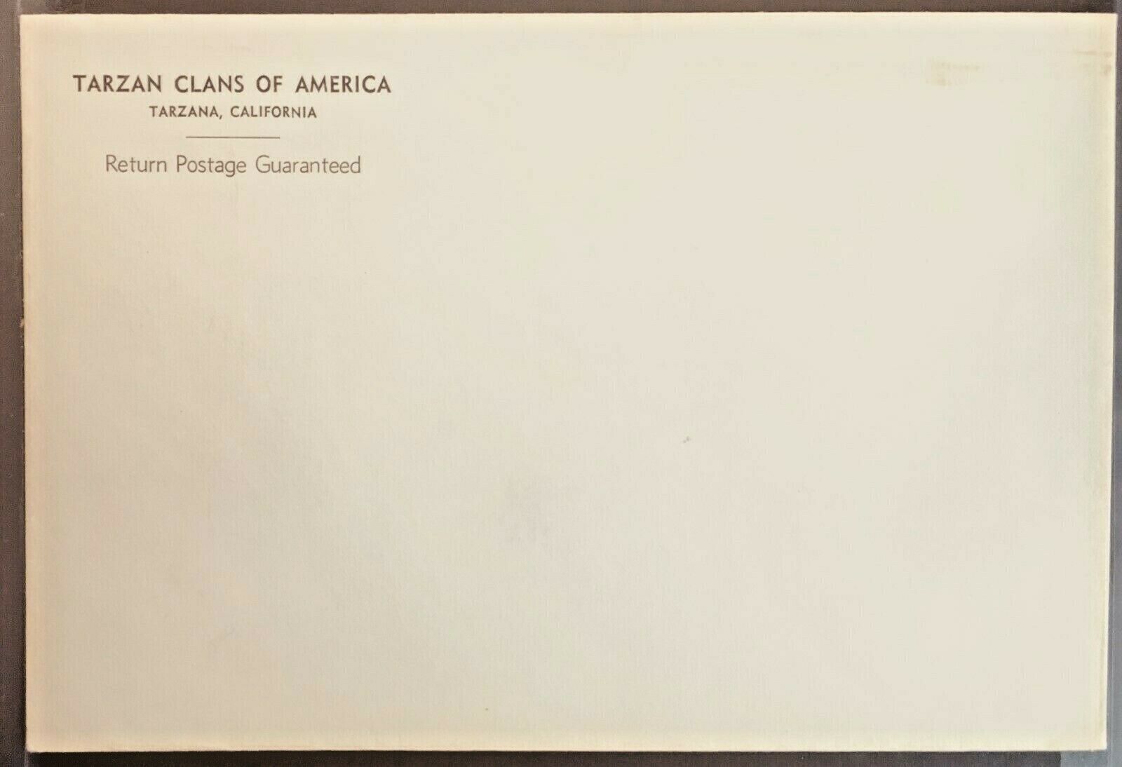 This is an exceptional copy of a rare booklet that Burroughs sent out to young people in an attempt to start a sort of Boy Scouts-like organization, but never was realized due mainly to business matters. Most of these that were sent out perished; many were destroyed in a fire caused by spontaneous combustion of nitrate films in the Burroughs warehouse. Some survived but most ended up smoke damaged and the company issued a little label explained why with the books sold from the warehouse were smoke damaged. (I have never encountered a ?Tarzan Clans? with the Burroughs fire label and my guess is that there just were not many left for the general public.)