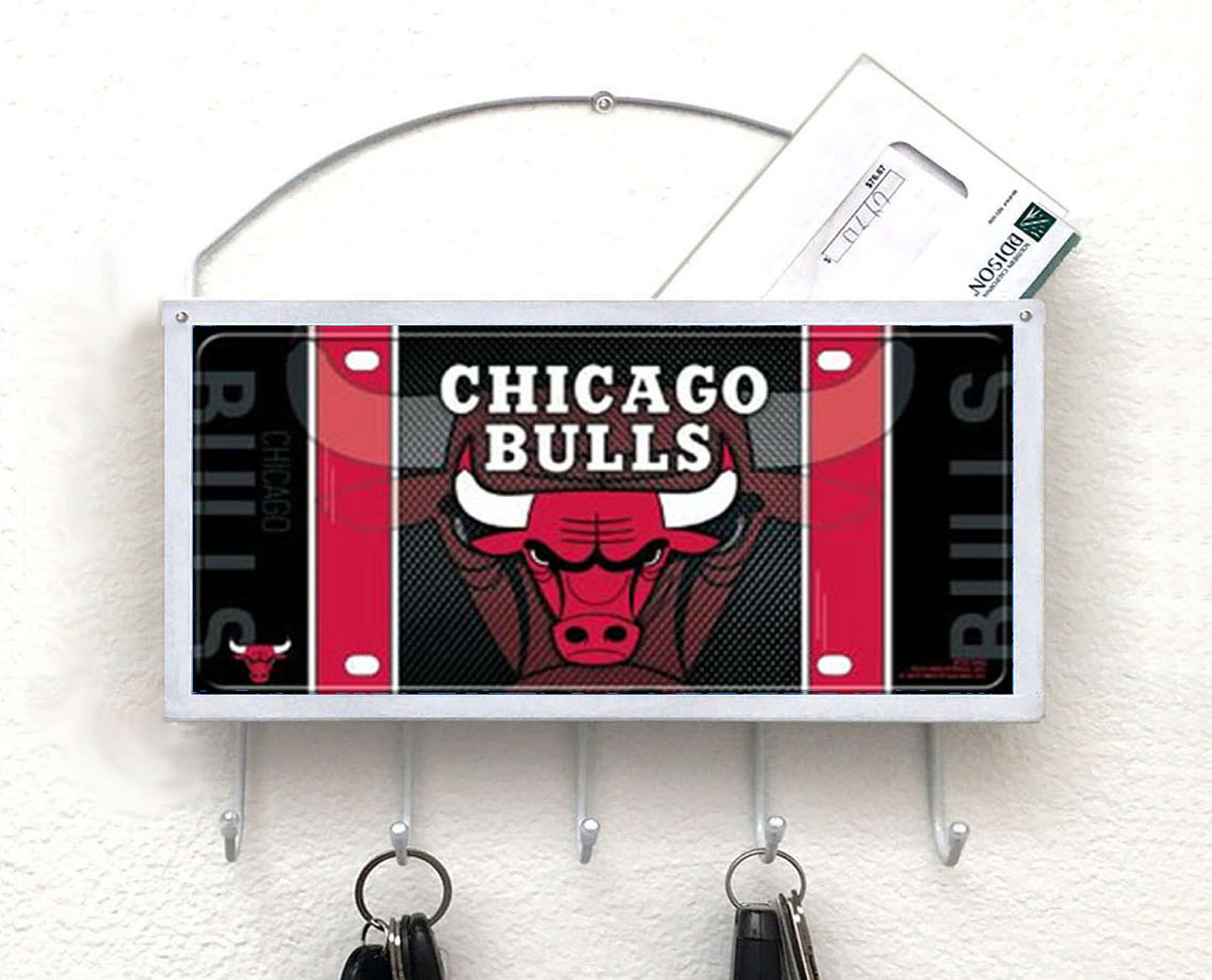 Chicago Bulls Mail Organizer, Mail Holder, Key Rack, Mail Basket, Mailbox, Decor