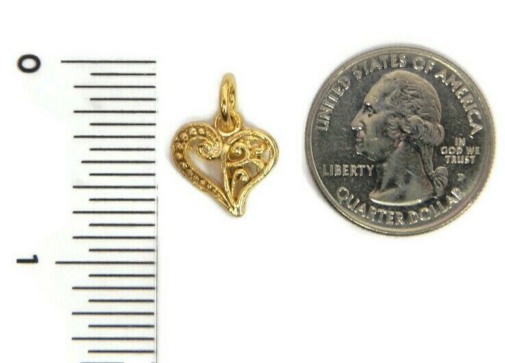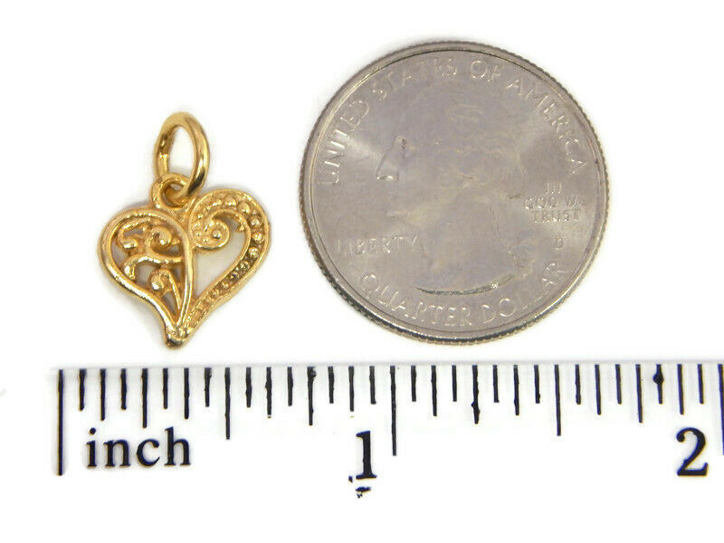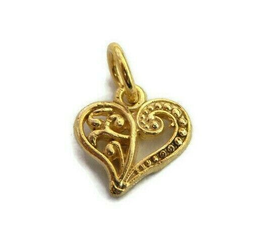 Authenticity Guarantee Heart Floral Charm Pendant 14k Yellow Gold.