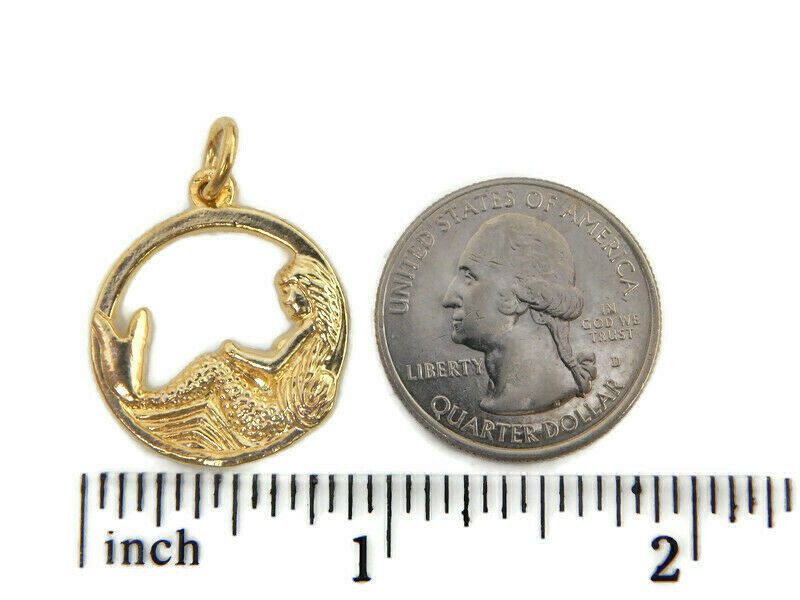 Authenticity Guarantee Mermaid Sitting Charm Pendant 14k Yellow Gold.