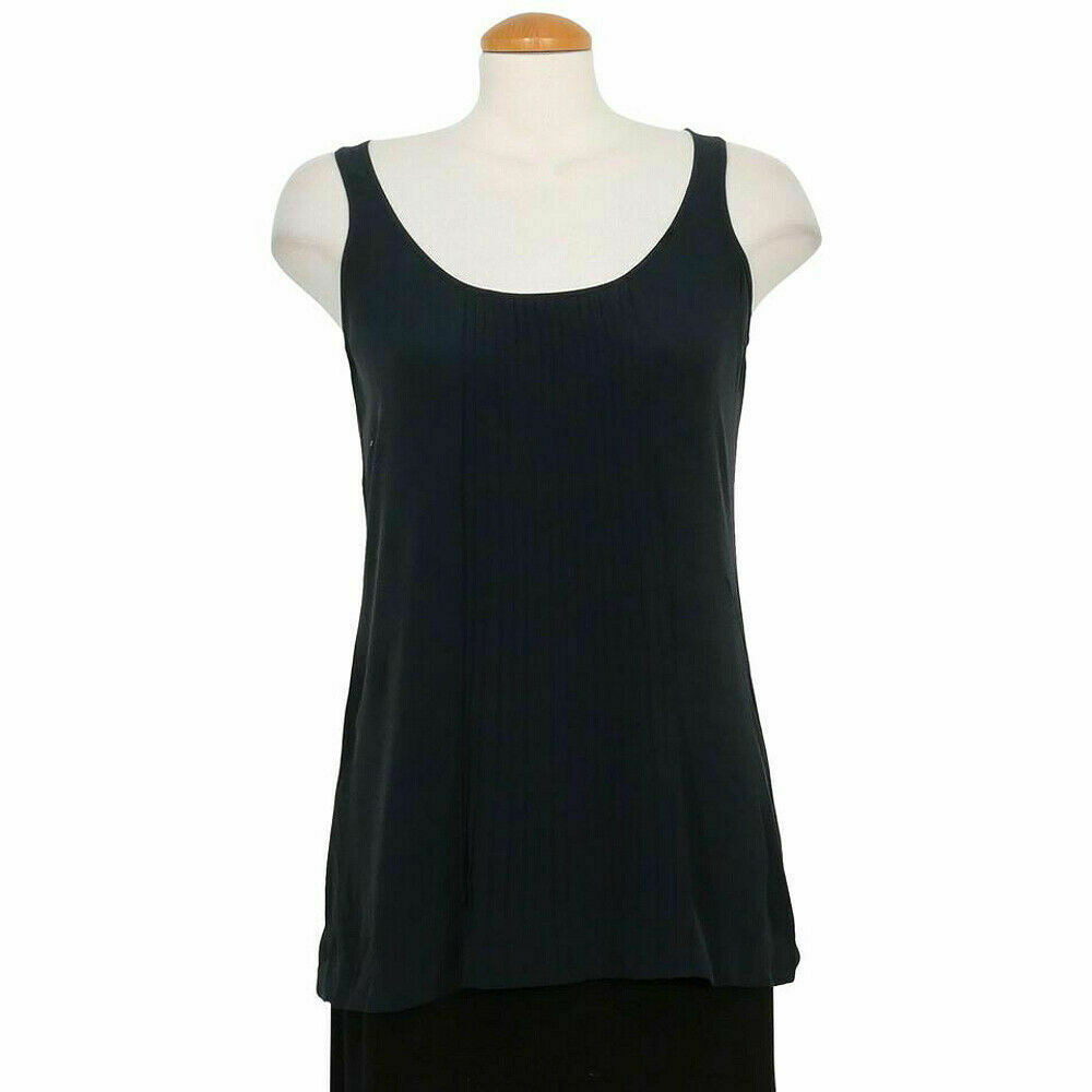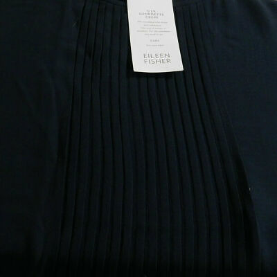 EILEEN FISHER Evening Blue Silk Crepe Pintuck Sleeveless Tunic Tank Top XS