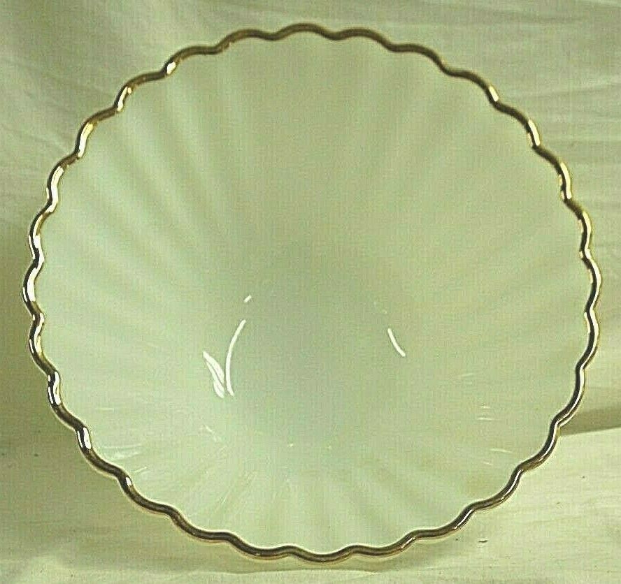 AH Fire King Opaque Milk White Glass Bowl Ribbed Gold Rim 11" Large Vintage MCM