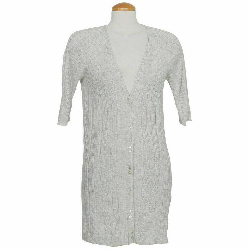 EILEEN FISHER Pearl Gray Linen Karma Knit Long Cardigan M