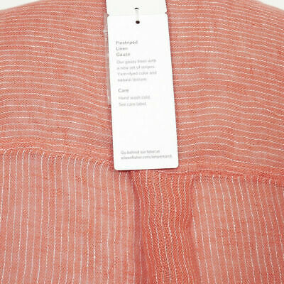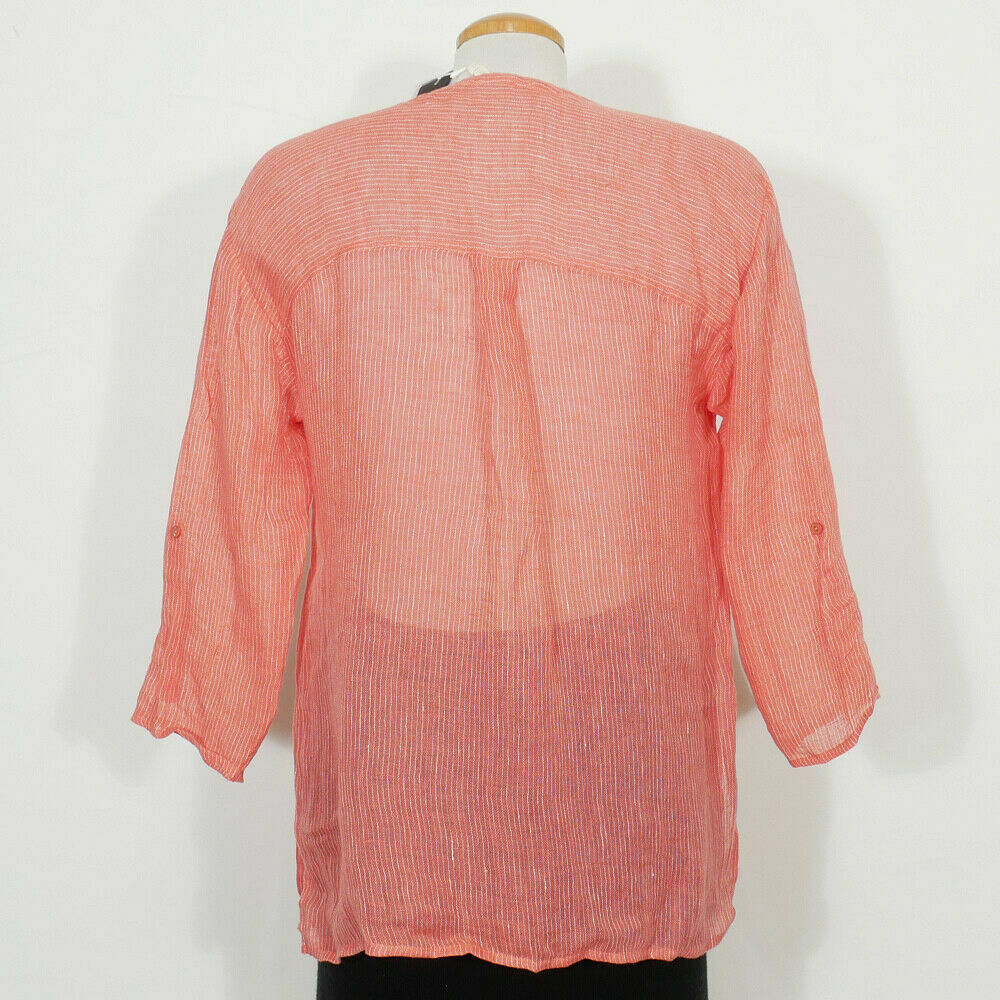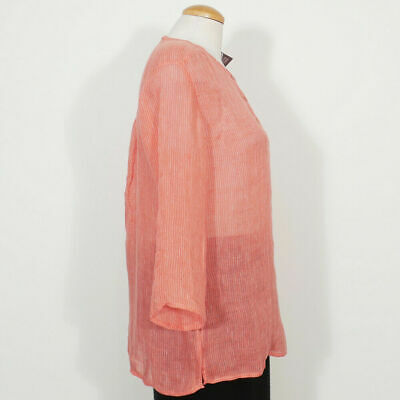 EILEEN FISHER Peony Pink Pinstriped Linen Gauze Henley Top XS