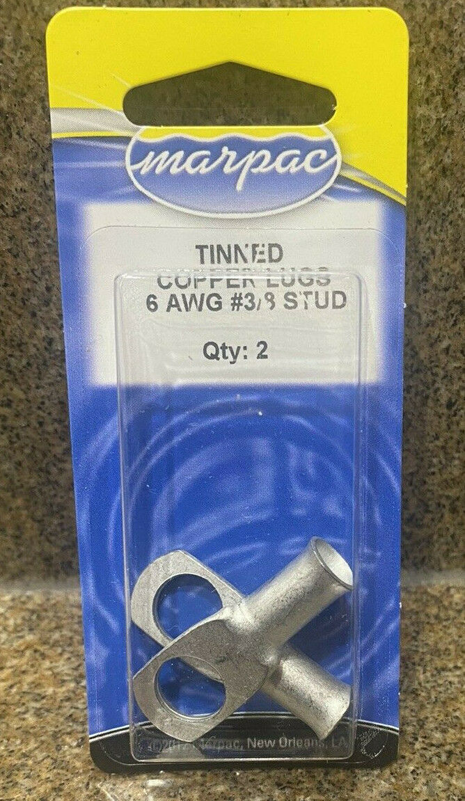 TWO (2) PACK - MARPAC TINNED COPPER LUGS 6 AWG 3/8 7-3480 - NEW
