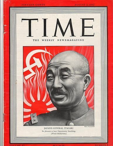 Time Magazine 1942 Aug 3 Japan's General Itagaki--WWII