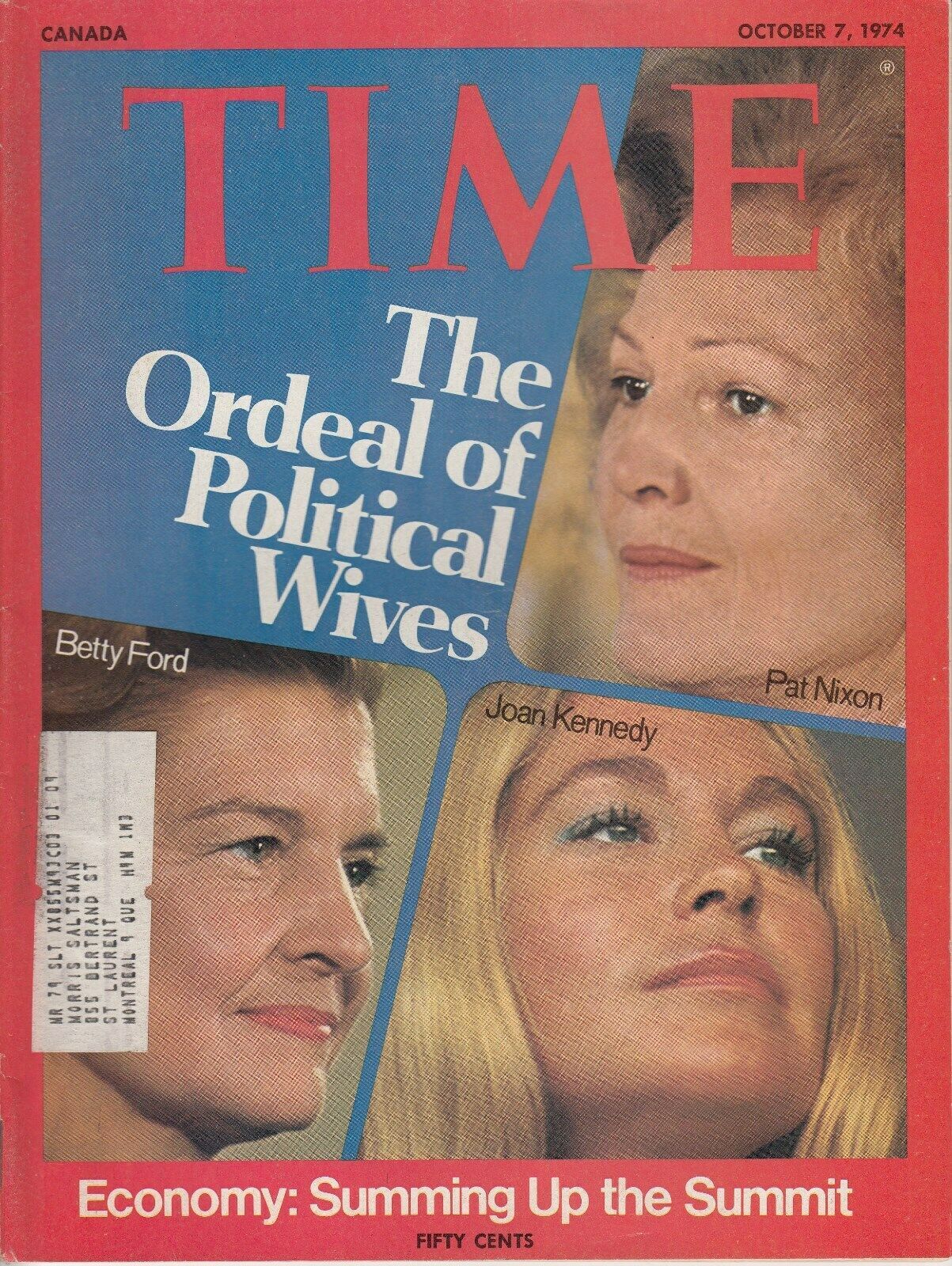 Time Magazine Canada 1974 October 7, The Ordeal Of Political Wives