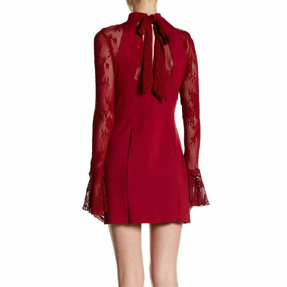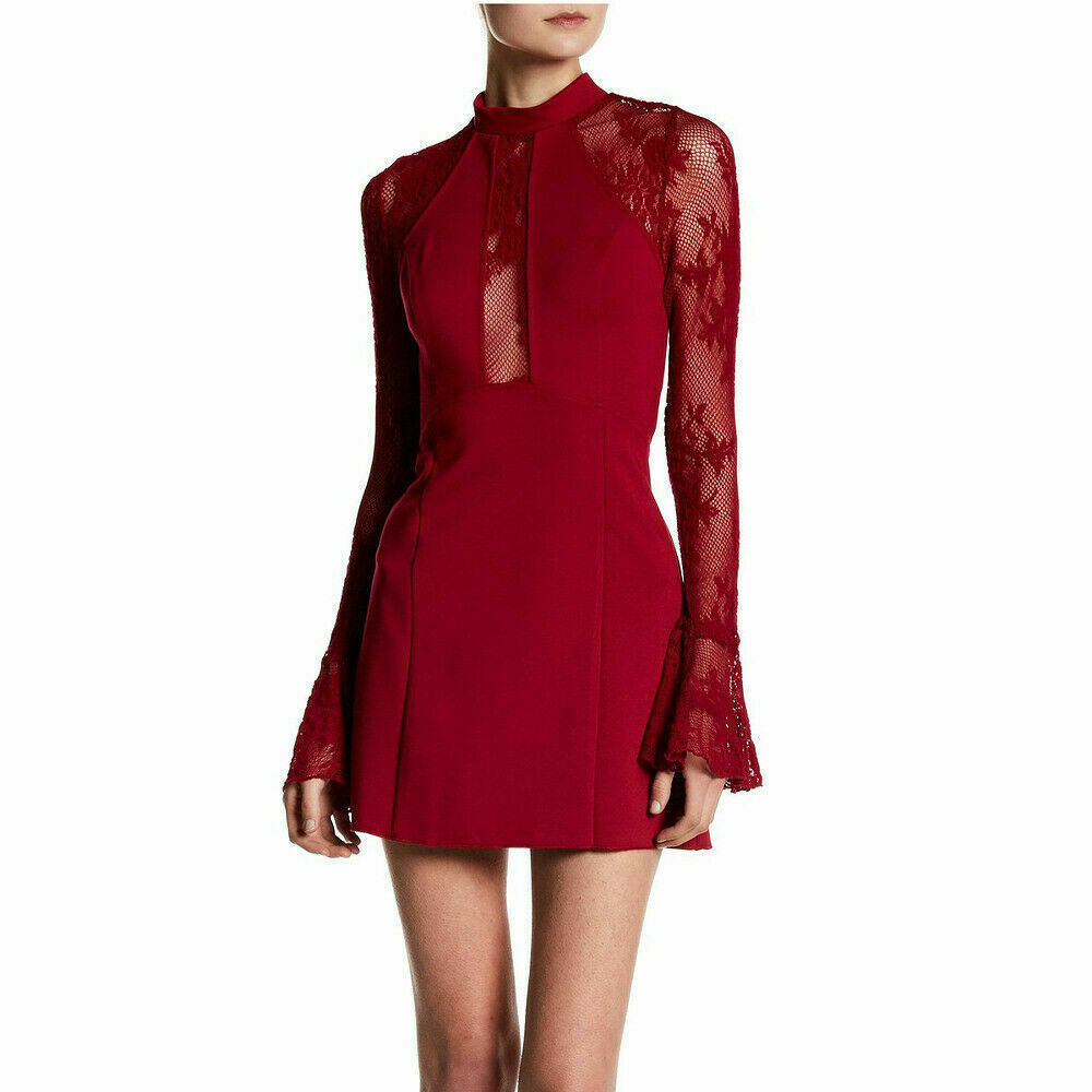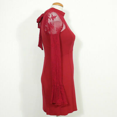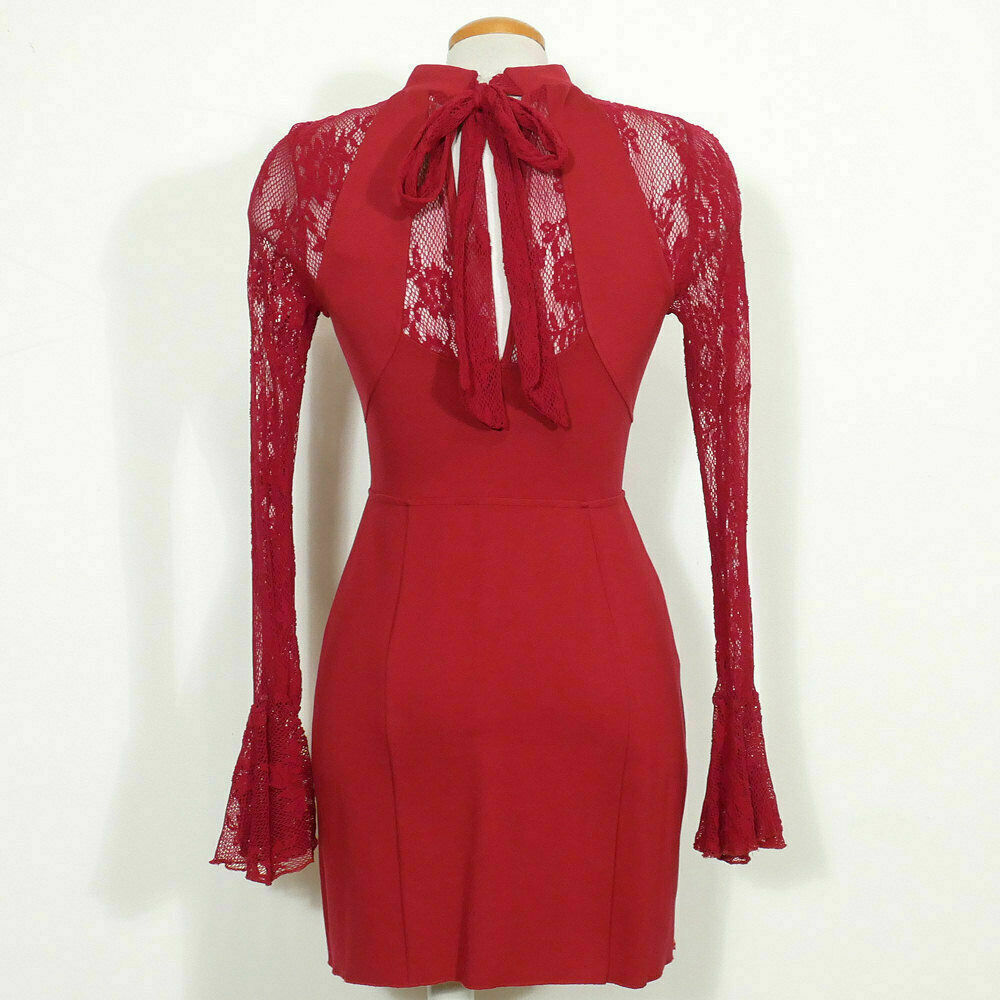 FREE PEOPLE Berry Red It's Now or Never Ponte Lace Bodycon Mini Dress XS
