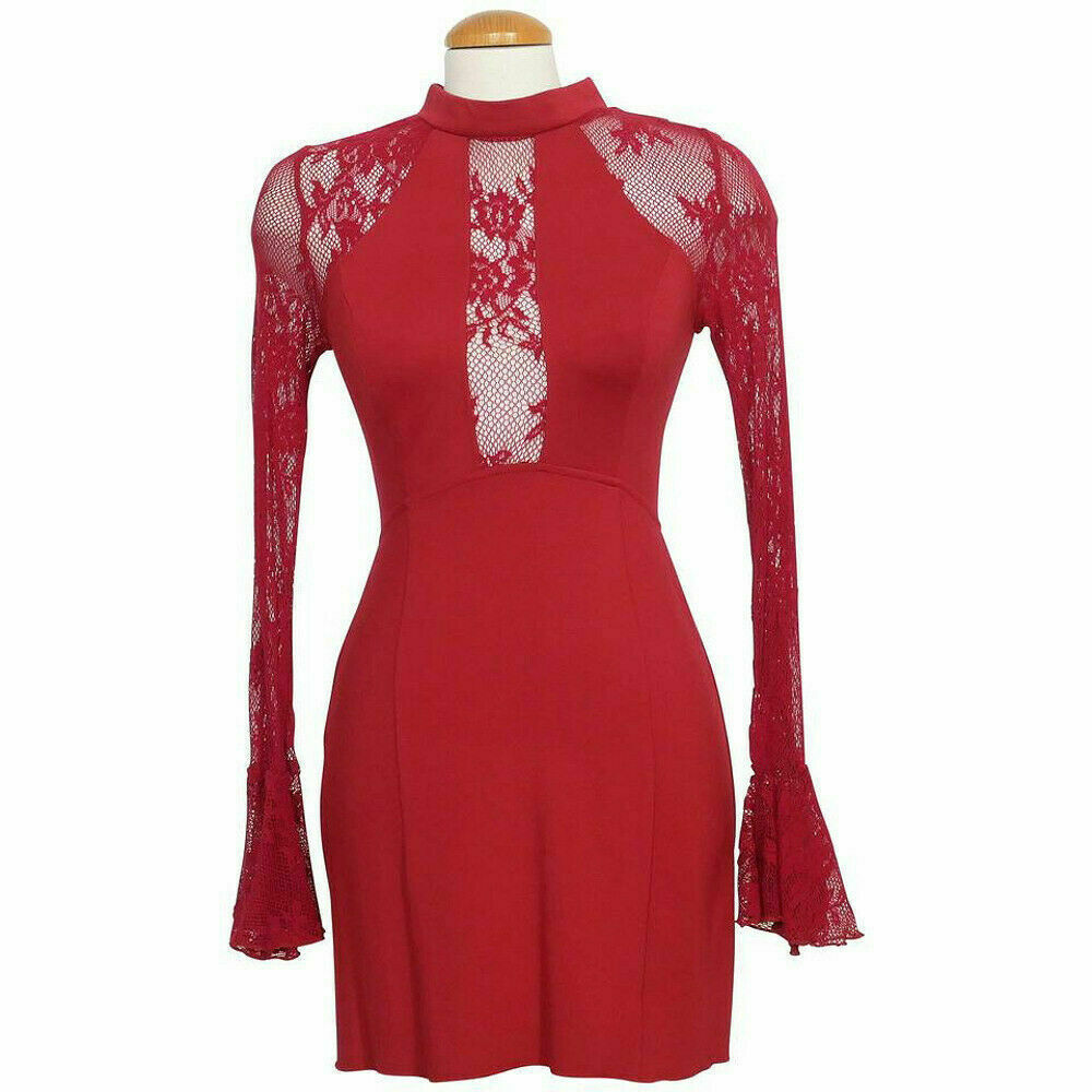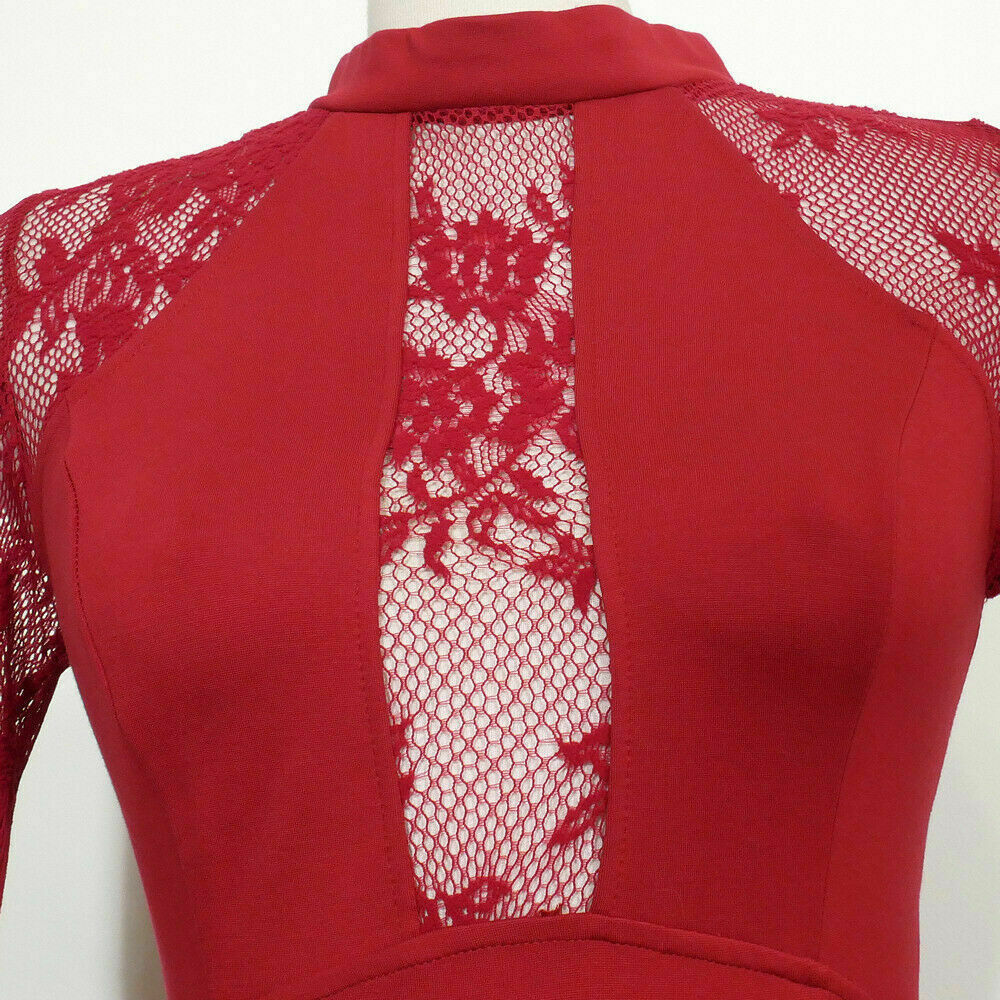 Berry Red It's Now or Never Ponte Lace Bodycon Mini Dress XS