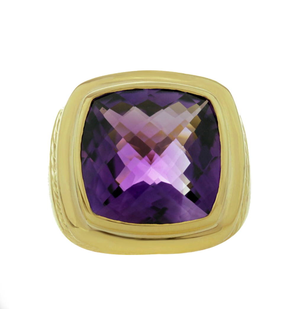 David Yurman Albion Amethyst Yellow Gold Cocktail Ring 14mm