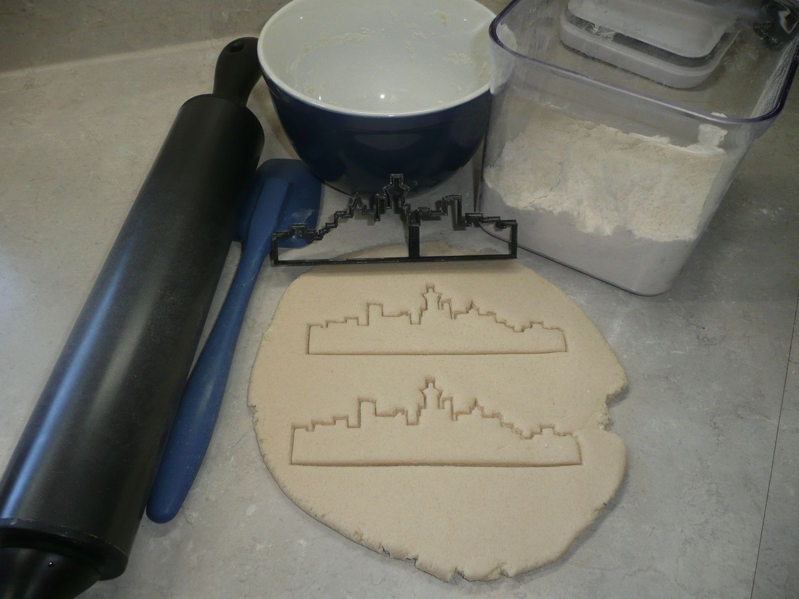 Cookie cutters are 3D printed in food-safe plastic.