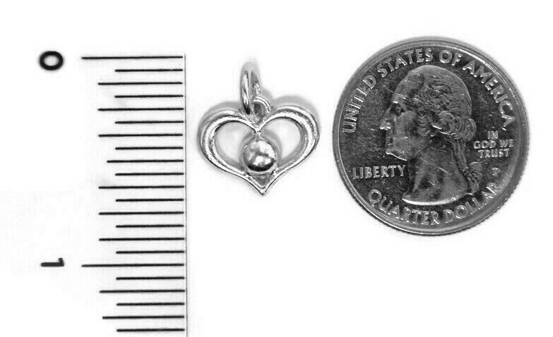 .925 Sterling Silver Heart With Ball Charm Pendant. The Charm Is 100% Handcrafted And Manufactured By Us Here In The USA.
