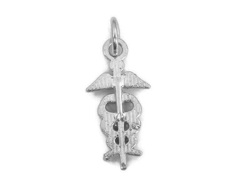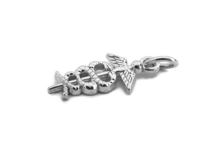 .925 Sterling Silver Caduceus Medical Symbol Charm Pendant. The Charm Is 100% Handcrafted And Manufactured By Us Here In The USA.