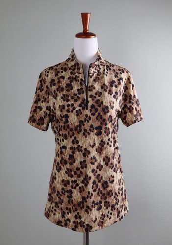 NWT Ladies IBKUL BLACK GRAY LE LEOPARD Long Sleeve Mock Golf Shirt S M L XXL