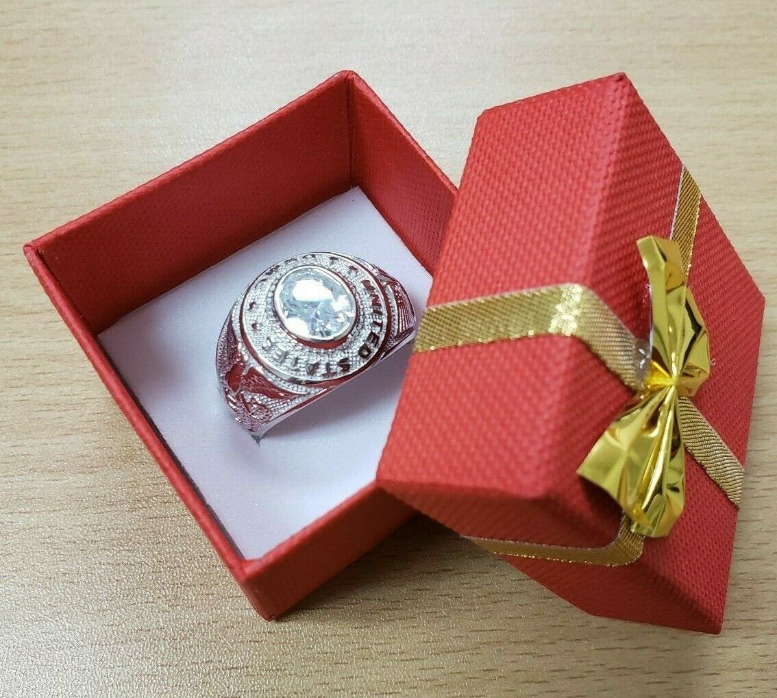 Mens Sterling Silver US Marine Corps USMC Birthstone CZ Ring