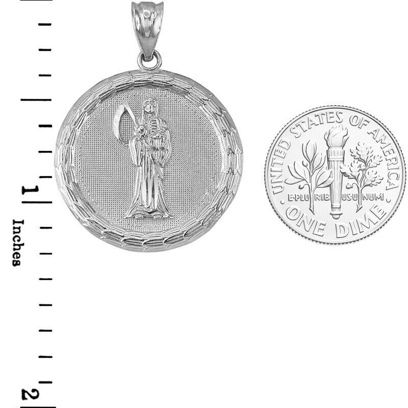 Santa Muerte (angel of death) Medallion Pendant Necklace in Sterling Silver