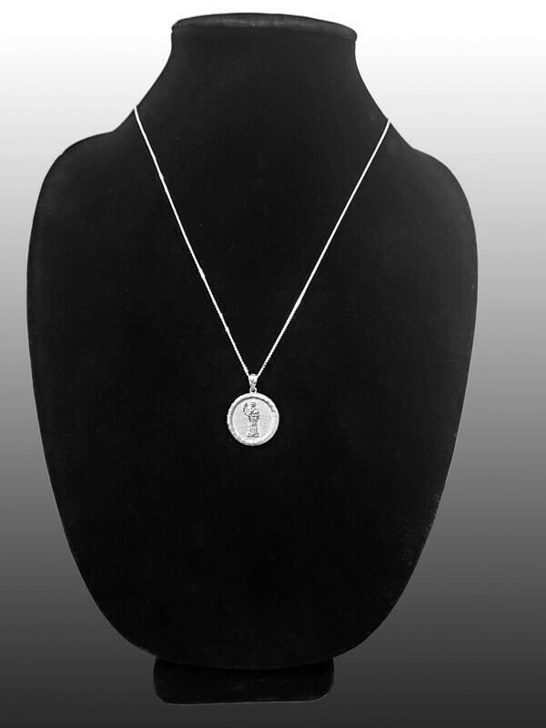 Sterling Silver Santa Muerte Medallion Pendant Necklace