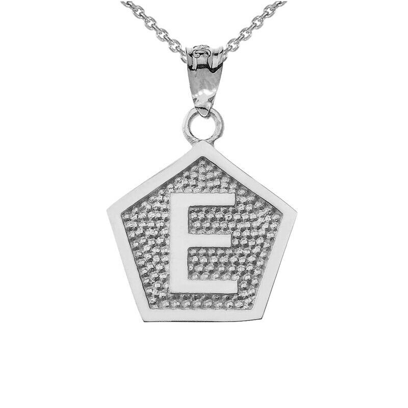 Sterling Silver Letter Initial Pentagon Pendant Necklace