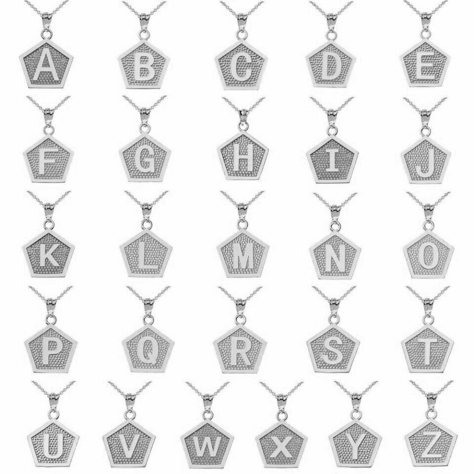 Sterling Silver Pentagon Shape Letter Initial Pendant Necklace