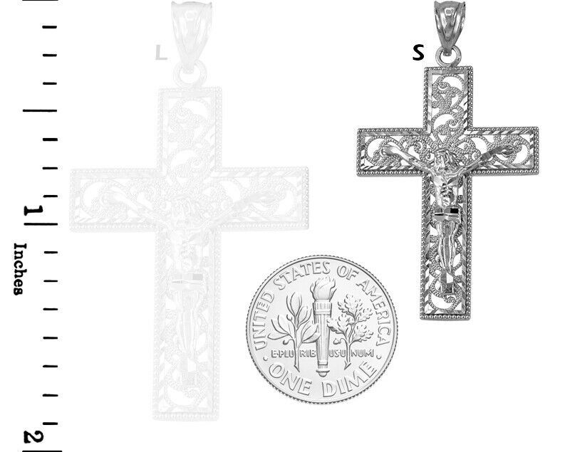 Milgrain Filigree Jesus Crucifix Cross Pendant Necklace in Sterling Silver