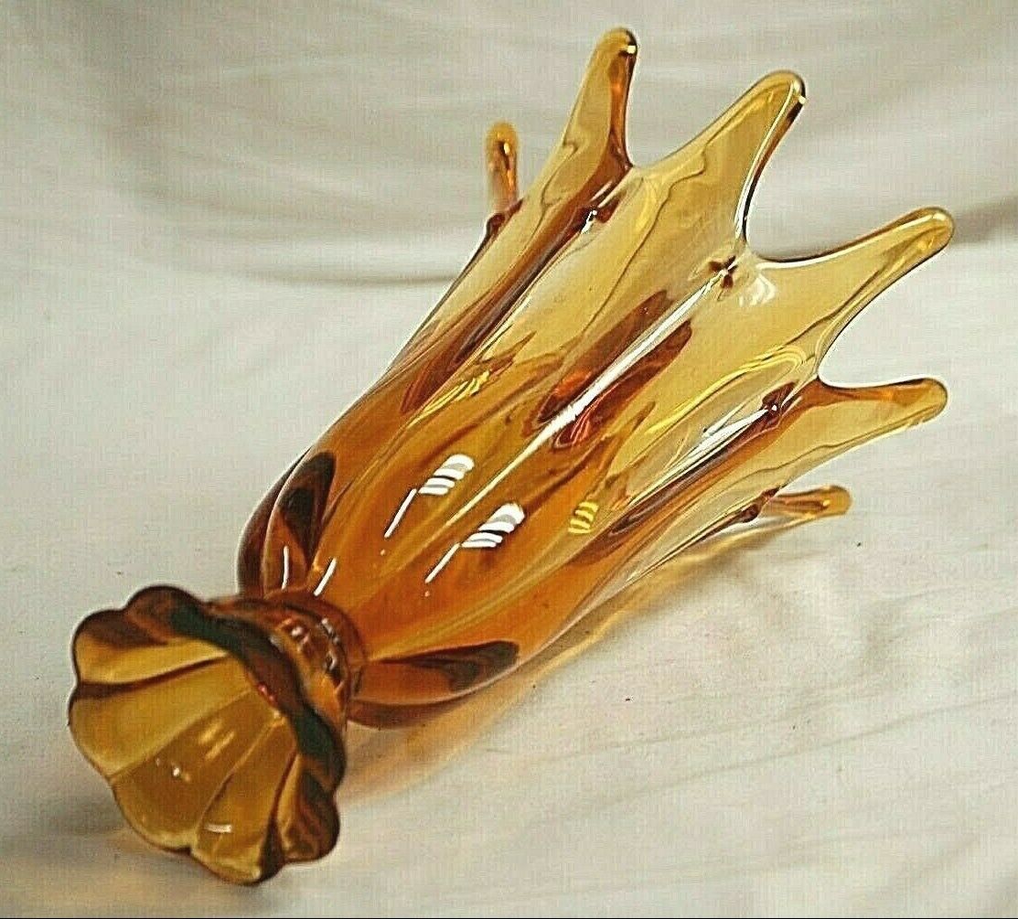 Elegant Studio Art Glass Vase Viking Style Amber Stretched Footed Vintage MCM