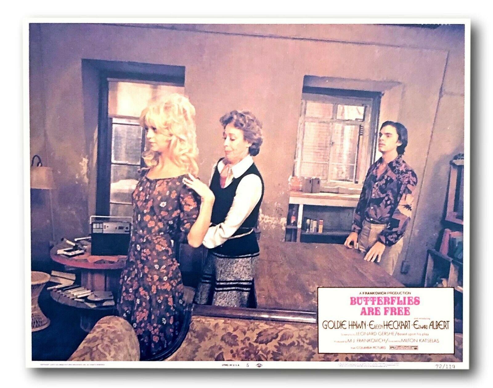 Looking for the next great piece to add to your memorabilia collection? Well, this is it! " Butterflies Are Free rdquo; Starring: Goldie Hawn, Edward Albert, Eileen Heckart Copyright Year / Dated: 1972 11" X 14" in size Not a bootleg or reproduction - GUARANTEED Original movie studio production theatrical lobby card used in a movie theater around time of release of the movie. Condition: Poster is in -vintage condition- and of investment quality. This original lobby card was used at a movie theater. It may or may not have staple marks at corners, wrinkling, slight tears around edges, rounded corners, etc. From being originally displayed at a movie theater or overtime natural wear. Colors and detail are outstanding for this day amp; age, photos may not completely pick up high quality of coloring and inks until you see in hand. Please make your personal assessment of the condition of this poster from the photos provided in the listing. The above condition issues are not exact for this poster, so please take a look at the photos to determine the condition. We ship our items very protected and secure to make sure this item makes it to you safely!!