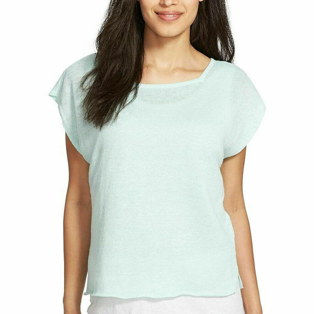 EILEEN FISHER Aurora Green Organic Fine Gauge Knit Crop Sweater Top PS