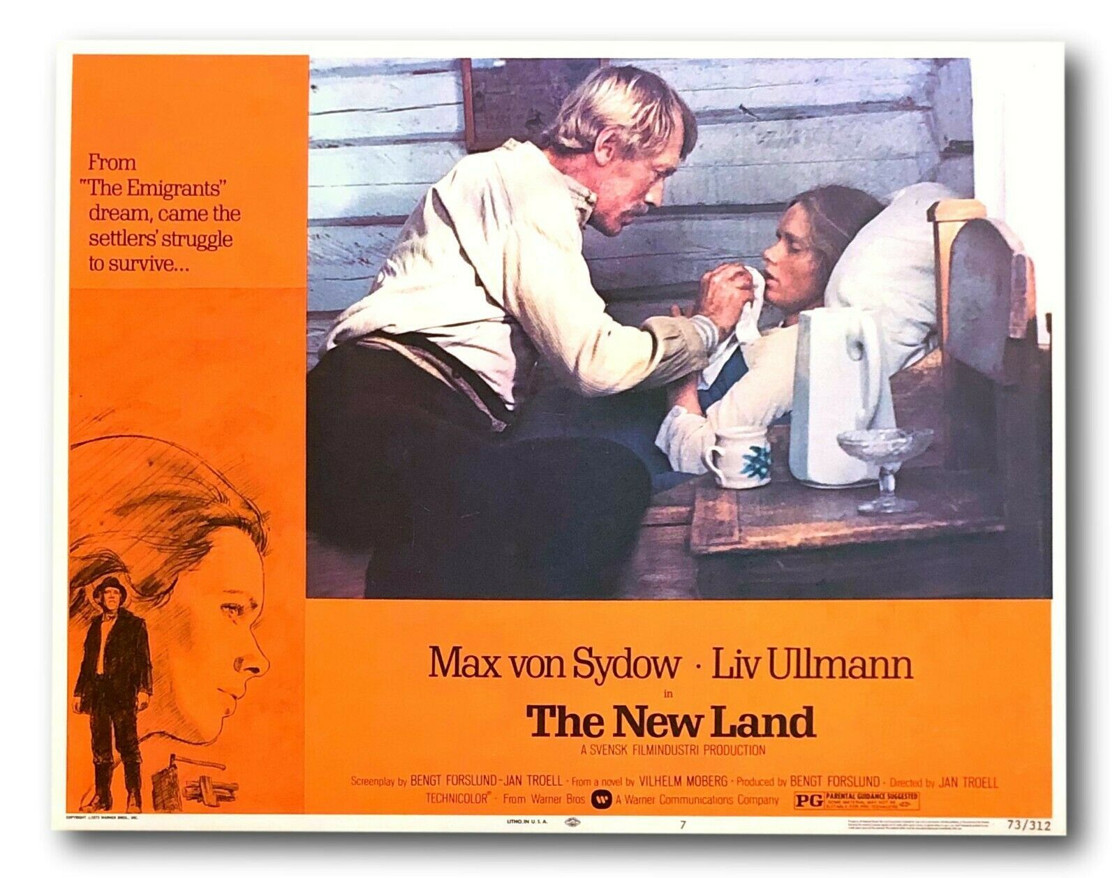 Looking for the next great piece to add to your memorabilia collection? Well, this is it! " The New Land rdquo; Starring: Max von Sydow, Liv Ullmann, Monica Zetterlund, Eddie Axberg Copyright Year / Dated: 1973 11" X 14" in size Not a bootleg or reproduction - GUARANTEED Original movie studio production theatrical lobby card used in a movie theater around time of release of the movie. Condition: Poster is in -vintage condition- and of investment quality. This original lobby card was used at a movie theater. It may or may not have staple marks at corners, wrinkling, slight tears around edges, rounded corners, etc. From being originally displayed at a movie theater or overtime natural wear. Colors and detail are outstanding for this day amp; age, photos may not completely pick up high quality of coloring and inks until you see in hand. Please make your personal assessment of the condition of this poster from the photos provided in the listing. The above condition issues are not exact for this poster, so please take a look at the photos to determine the condition. We ship our items very protected and secure to make sure this item makes it to you safely!!